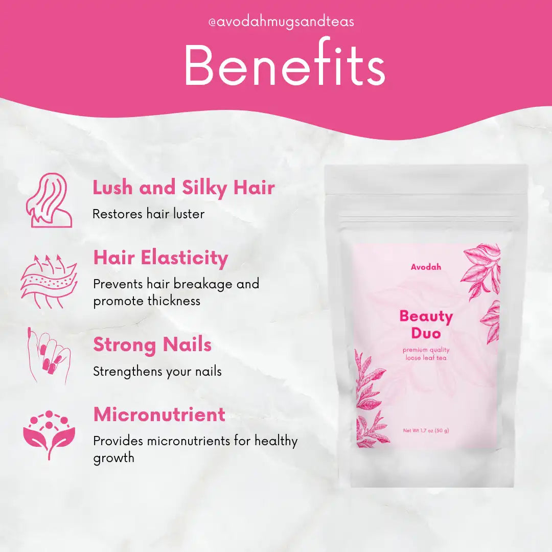 Its name is Beauty Duo Tea because it focuses on the two primary markers of beauty from within: hair and nails.