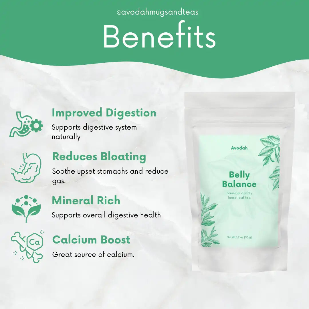 Belly Balance Tea is your perfect companion for moments of self-care, designed to soothe and nurture your digestive system. A harmonious blend of rooibos, peppermint leaves, calendula petals, and cacao bean pieces, this tea has a refreshing minty flavor and a subtle chocolate note, creating a comforting, indulgent experience with every sip.