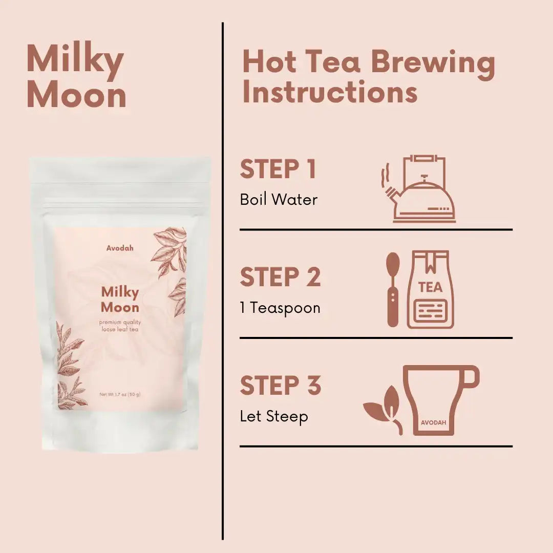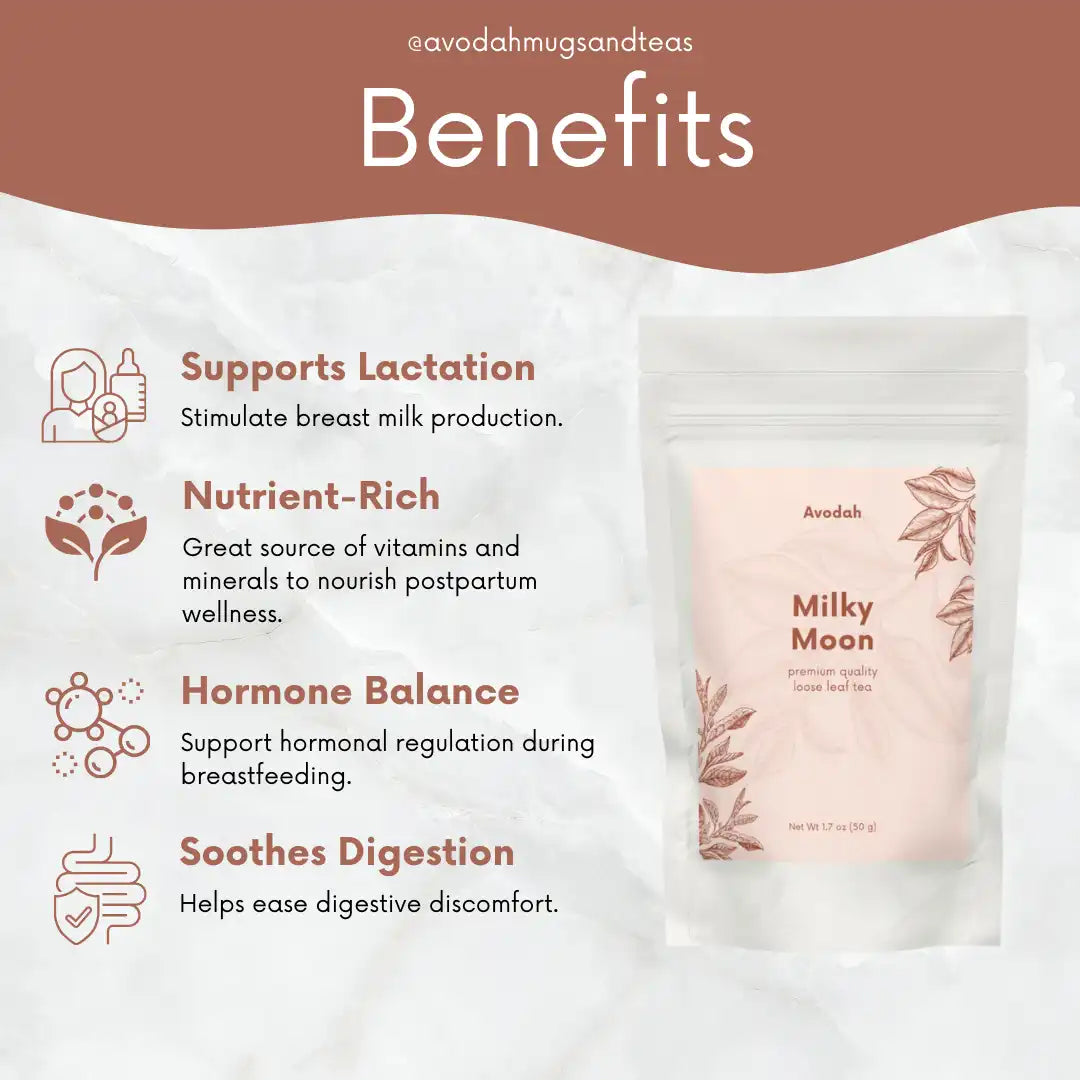 Milky Moon Tea is a nurturing blend crafted to enhance breast milk production. This carefully formulated tea combines milk thistle, blessed thistle, moringa, fenugreek, alfalfa, raspberry leaf, shatavari, and ginger root to promote healthy lactation and nourish your body.
